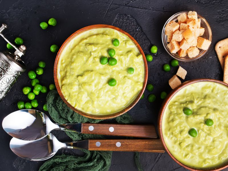Vizualnu prezentaciju svog sljedećeg obroka učinite još primamljivijom uz dodatak kremastog, ukusnog (i zelenog) pirea od graška i krumpira.