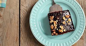 Šećer pomiješajte s 30ml vode i kuhajte na srednje jakoj vatri dok se šećer otapa. Karamelu ostavite da se ohladi 8 do 10 minuta i umiješajte lješnjake. U blenderu izmiješajte smjesu. Zagrijte vrhnje, dodajte čokoladu i miješajte dok se ne otopi. Dok je još toplo dodajte smjesu u s lješnjacima. Prelijte preko biskvita i ostavite da odstoji u frižideru 90 minuta.