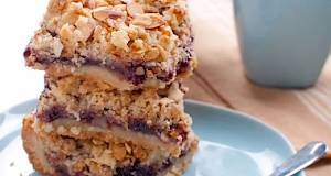 Pomiješajte brašno, zobene pahuljice, šećer, prašak za pecivo i cimet. Dodajte rastopljeni maslac i miješajte dok ne dobijete krupne mrvice. 2/3 smjese rasporedite u pripremljen lim za pečenje. Pecite u pećnici 10 minuta.