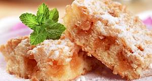 Pečeno tijesto premažite marmeladom. Naribane jabuke ocijedite od viška tekućine i umiješajte grožđice, šećer i orahe. Smjesu ravnomjerno stavite na koru i prekrijte drugim dijelom tijesta. Tijesto na nekoliko mjesta ubodite vilicom. Pecite na 180°C oko 40 minuta ili dok ne porumeni. Ohlađenu pitu pospite šećerom u prahu.