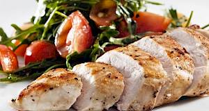 Zagrijte pećnicu na 180°C. Pileća prsa namastite i začinite po želji. Stavite na lim za pečenje i pecite 30 do 45 minuta.