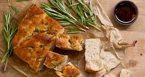 Pomiješajte češnjak s maslacem i stavite na tijesto. Pospite sir i majčinu dušicu. Stavite kruh u nauljen lim za pečenje i ostavite da se diže 40 minuta.