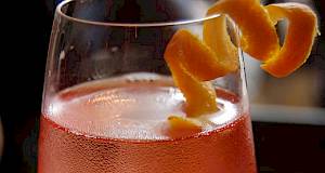Vrećice čaja i narančinu koricu držite u kipućoj vodi 3 do 5 minuta. Uklonite vrećice čaja i koricu naranče. Dodajte sok od naranče i šećer. Dodajte hladnu vodu. Držite u hladnjaku do posluživanja.