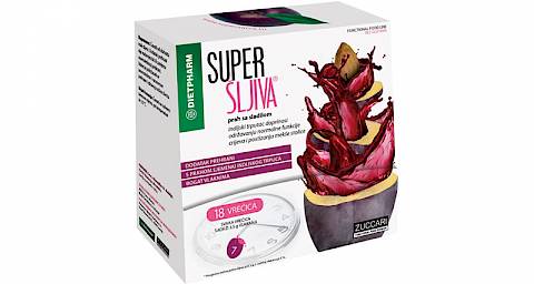 Super Šljiva je dodatak prehrani s prahom sjemenki indijskog trpuca, dodatno je obogaćen vlaknima iz gume akacije i dekstrina.