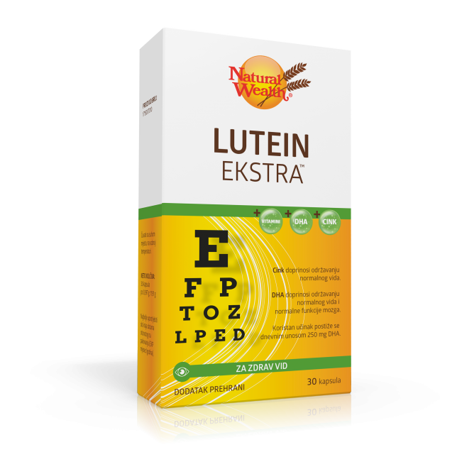 Natural Wealth® Lutein Ekstra™ ponovno je dostupan u ljekarnama. Nova, poboljšana formula, uz veći sadržaj luteina, sadrži i ribljeu lje koje je izvor važne DHA, vitamine A i B2, cink te zeaksantin.