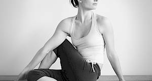 4. Ostanite u ovoj pozi 5 sekundi, zatim krenite lijevim laktom prema desnom koljenu.