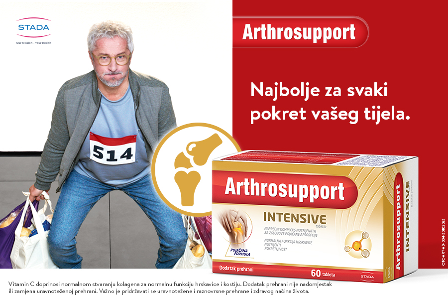 Arthrosupport INTENSIVE* ima pojačanu formulu, a njegov je sastav osmišljen prema potrebama mišićno-koštanog sustava i znanja o nutrijentima za zglobove. Sadrži 3 elementarna sastojka zglobne hrskavice: kolagen tip II, glukozamin sulfat i kondroitin sulfat. Mangan doprinosi normalnom stvaranju vezivnog tkiva i održavanju normalnih kostiju, a vitamin C je esencijalni vitamin za formiranje kolagenskih vlakana. Sastav je dodatno obogaćen ekstraktima tradicionalnih biljaka - indijski tamjanovac (Boswellia serrata), bijela vrba (Salix alba) i kurkuma (Curcuma longa), crni papar (Piper nigrum - patentirani ekstrakt BioPerine®) - koji pojačava apsorpciju nekih minerala, vitamina i drugih tvari do 80% (Patent US 5972382 A).
